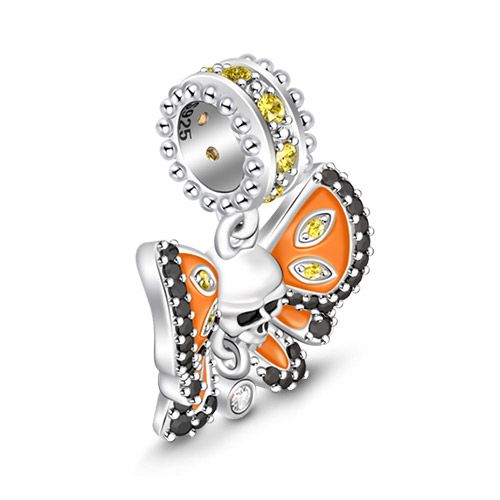 This butterfly, has exquisite wings of orange enamel, also yellow topaz & black cubic zirconia, fancifully equipped with a skull head, represents the miracle of resurrection & rebirth in life. Styled in sterling silver, excellent polish & finish, eventually complete the entire symmetrical look! Setting Information Metal : 925 Silver Weight : 2.44 g Width…