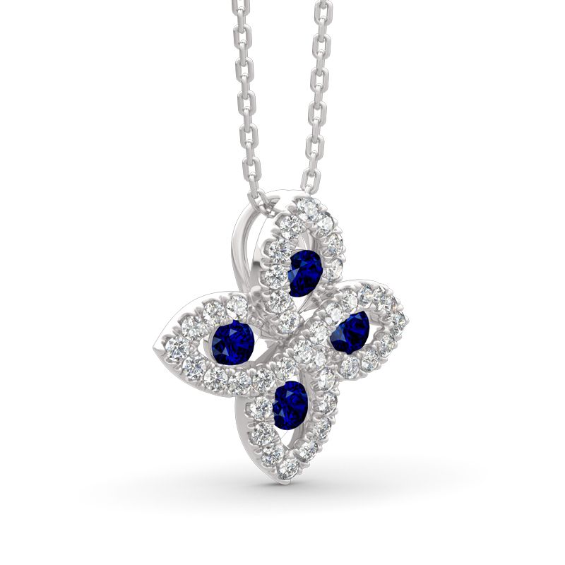 Exquisite and stunning, this necklace makes an adorable gift for loved one or yourself. Inspired from ballerina’s flying skirt, it presents an elegant silhouette that will remain endlessly enchanting. Glistening double halo surrounds the sapphire blue center stone to create a sparkling and luxurious look. Crafted in sterling silver, it’s durable and comfortable for daily…