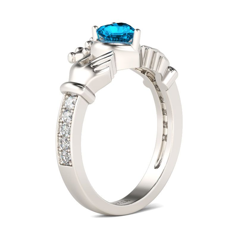 Celebrating love, beauty and Irish culture, this Claddagh ring will capture your heart at first sight. Crafted in sleek sterling silver, the ring features an heart center stone with sparkling aquamarine color. The traditional Claddagh ring is a meaningful token of loyalty, friendship and love. The hands represent friendship, the heart represents love and the…