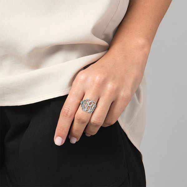 Monogram rings are the perfect option for fashionistas everywhere with a taste for elegance. A fashionable, personalized statement piece you’ll love wearing with a variety of looks, this monogram ring showcases three elegant, intertwined initials. This custom monogrammed ring is a beautiful accoutrement to any monogram jewelry collection. Setting Information Metal : 925 Silver Width…