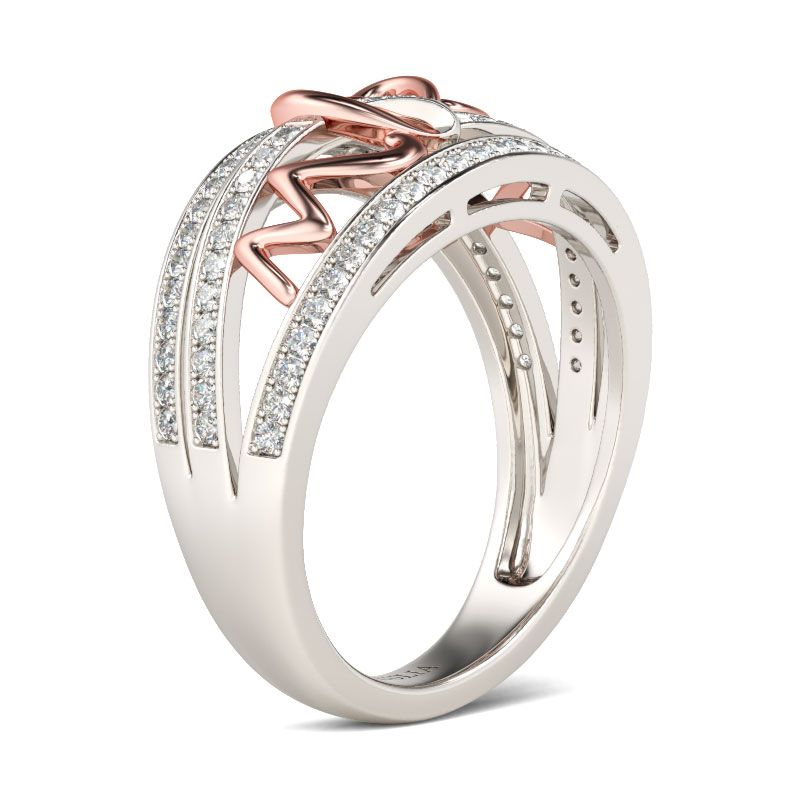 Dainty and delicate, this heart ring makes a little lovely gift for loved one or yourself. Heart is one of the most popular motifs in jewelry. It’s often related with love. Crafted in two tone sterling silver, the ring features five rose gold tone hearts sculptured on the shank. Shimmering stones are set on the…