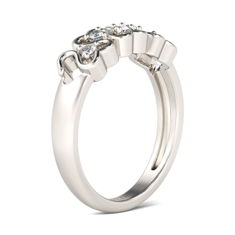 This band features a row of linked hearts on the shank. Heart element is always popular in jewelry design. This band will surely be an eye-catcher everywhere. Never miss it. Side Stone Number of Stones : 5 Carat Weight : 0.33 ct Stone Shape : Round Stone Color : Diamond White Stone Size : 2…
