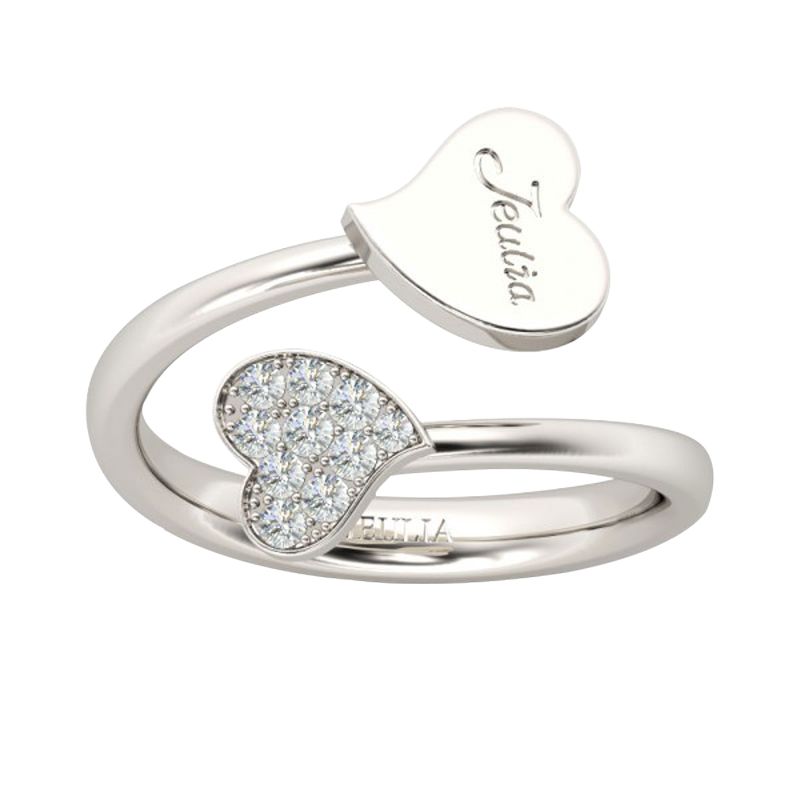 Uniquely designed to be noticed, this heart ring makes the fashion grade.Two heart shapes are sculptured on the sterling silver bypassing shank.Besides, you can engrave her name or even a meaningful word to make this gift an extra-special one she’ll cherish for years to come.This ring is a beautiful beginning to a lifetime of love….