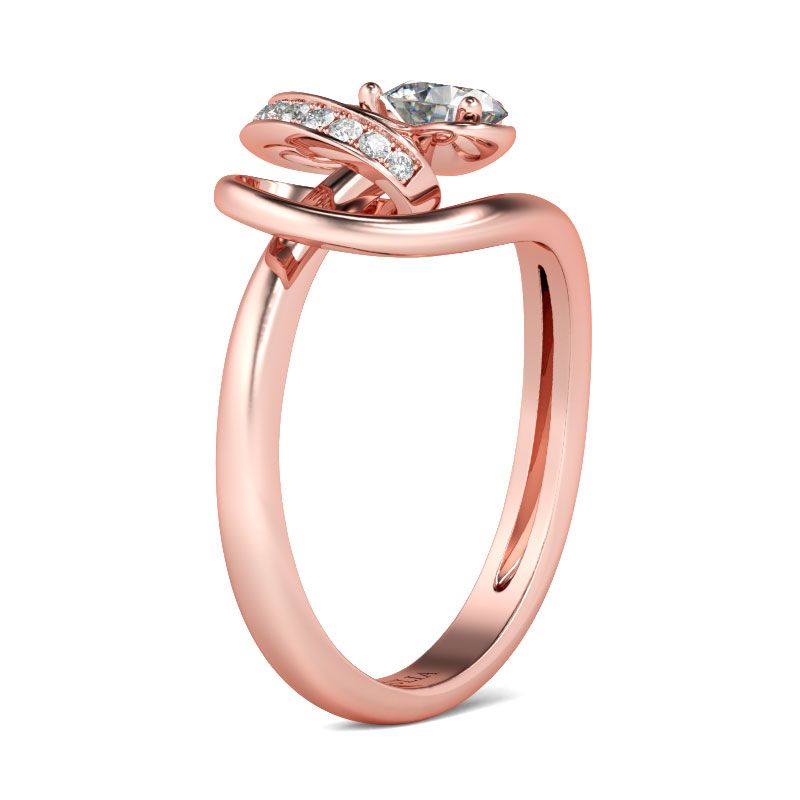 A vintage and exquisite look, this engagement ring will capture your heart at first sight. Crafted in sterling silver, this beautiful design showcases a round-cut center stone set on a nature-inspired mount. Along the vintage-inspired shank, leaves are sculptured on it. For this ring, you can customize the color of metal and the stones to…
