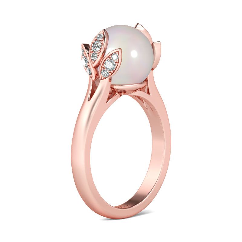 “You can’t ever go wrong with pearls. Perhaps pearls are a girl’s best friend after all.” Presenting incredible shine, a treasured cultured pearl illuminates at the center of this sophisticated ring. The gracefully leaf-shaped setting lined with shimmering white stones, highlighting this classic design. As June’s birthstone, a pearl makes this ring the perfect birthday…