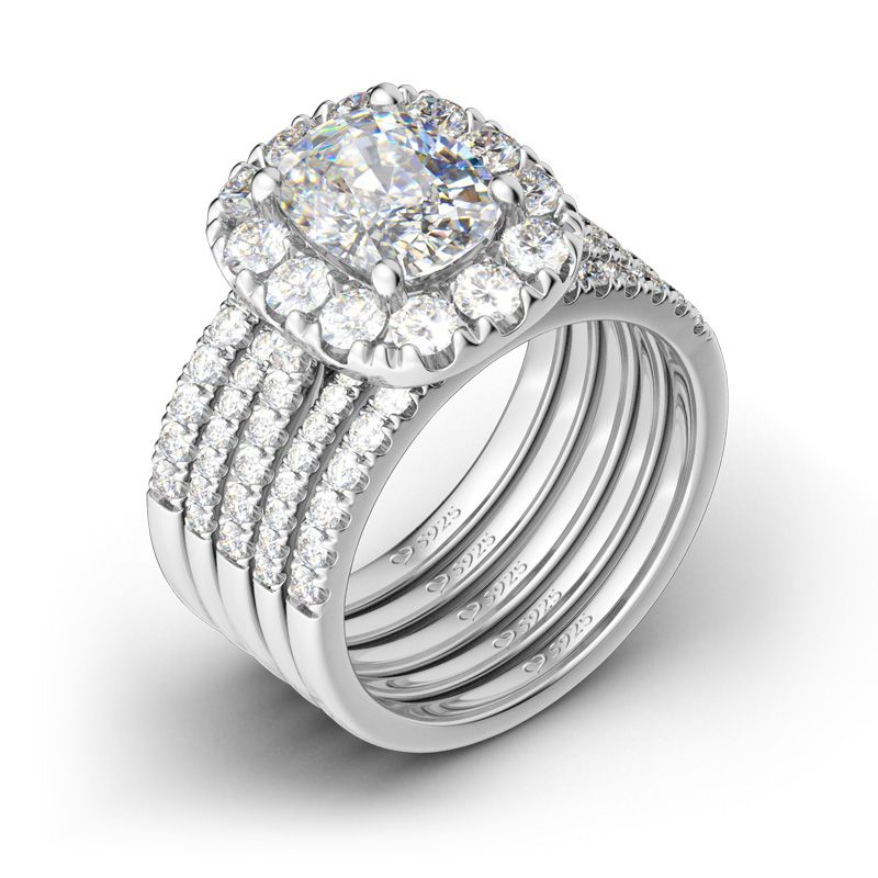5PC Halo Oval Cut Sterling Silver Ring Set