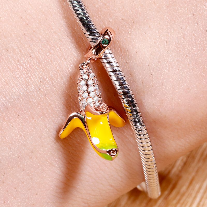 “Banana Makes Me Happy” Sterling Silver Dangle Charm