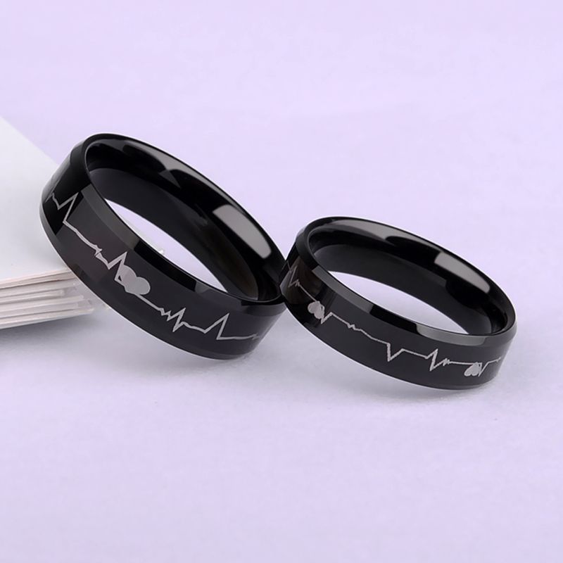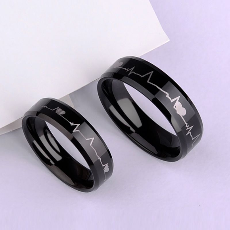 Black Heartbeat Style Tungsten Steel Couple Rings