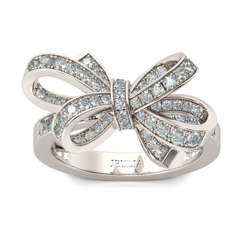 Give her all your love tied up with a glistening bowknot ring. It features a ribbon that twists and twirls into a charming bow at the center. Standing atop a polished shank, this lovely design makes an elegant accessory. Sparkling stones add an element of glamour to this feminine design.