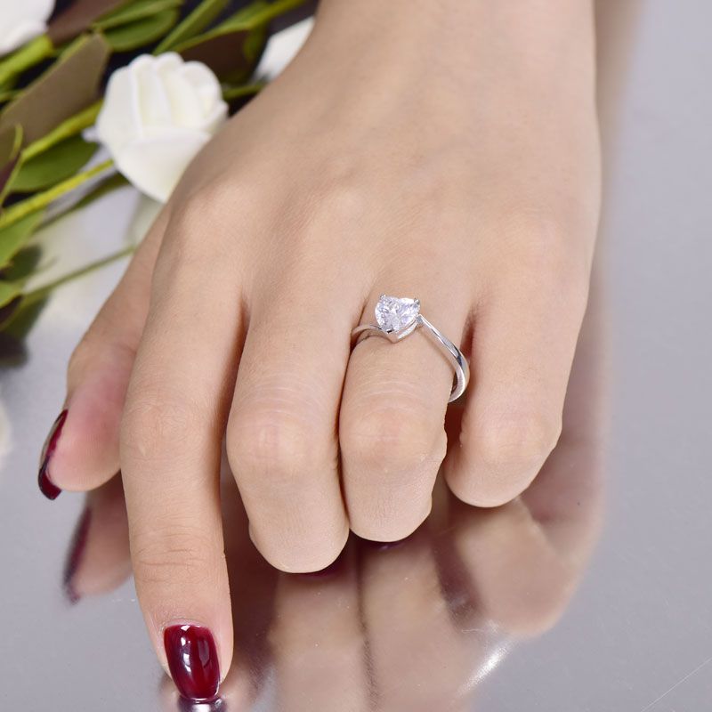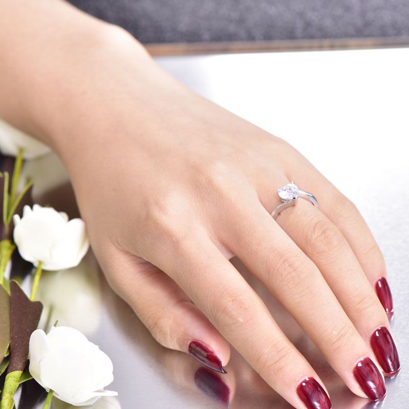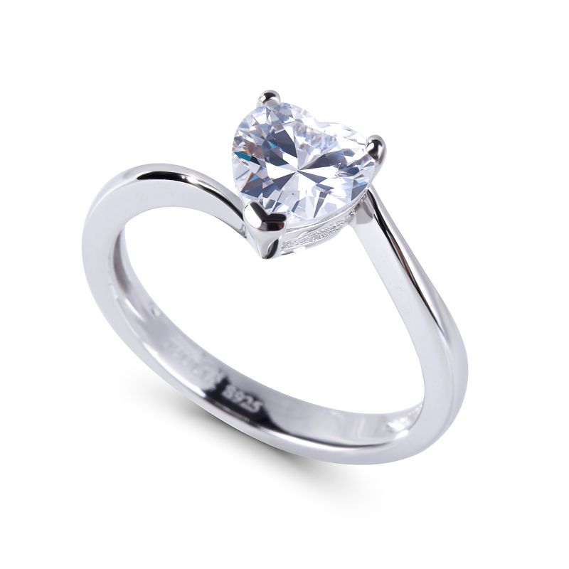 Simple but not plain, this ring is an adorable choice for fans of simple style. Crafted in sterling silver, the ring features a heart-cut center stone set on a high polished bypassing shank. It will show a understated and elegant look on your finger. Treat yourself with this little lovely piece.