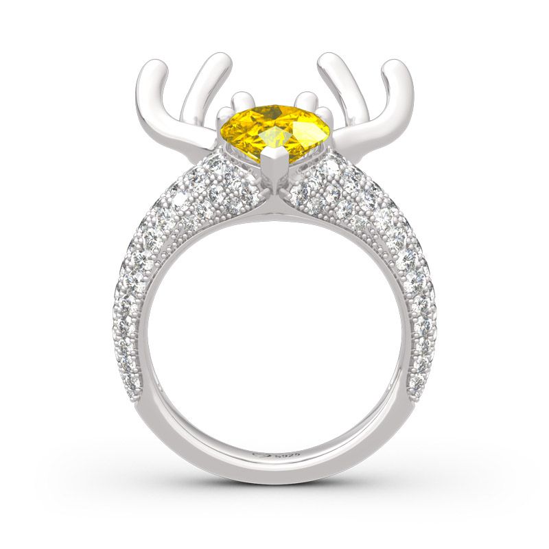 “Christmas Reindeer”Antler Pear Cut Sterling Silver Animal Ring