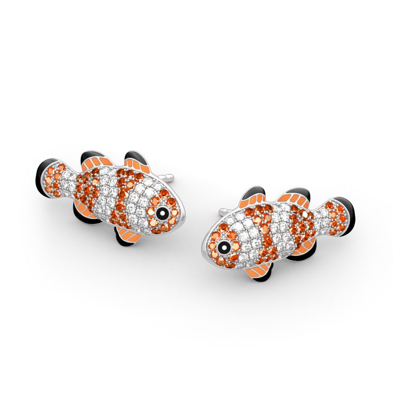 Do you still remember the cute clownfish-Nemo in the movie Finding nemo? This small fish, which lives in symbiosis with the sea anemone, is easily recognisable thanks to its bright orange body and wide white stripes. Beautifully handcrafted in sterling silver,each earring shimmers with sparkling stones, bright eyes and colorful body. If you are looking for jewelry that can catch up with the jewelry trend, then add this piece to your jewelry box.