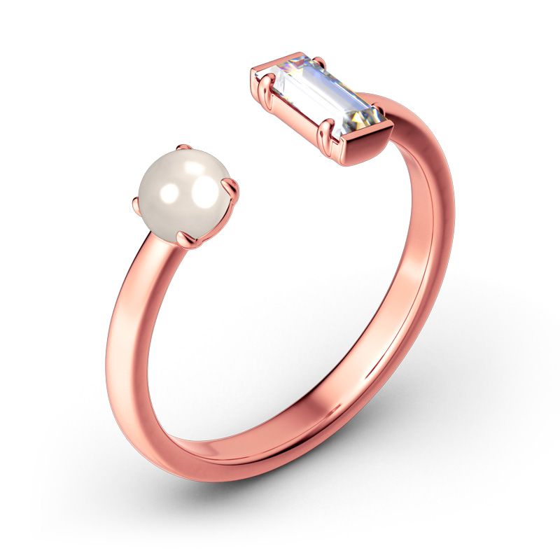 Stack this ring with your other rings to create a stylish and unique look. Expertly crafted in sterling silver and you can choose the color of the ring. A glistening emerald-cut stone and a white pearl make the ring a simple but timeless design. We have more choices for you to match with this ring. Just add this little lovely ring to your jewelry box.
