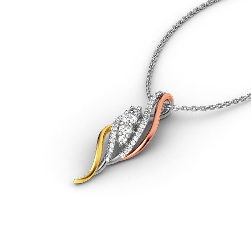 Rich with color and sparkle, this tri-tone necklace is perfect for any occasion. This shimmering design features three sparkling round stones accross the center, while additional stones adorn the curved ribbon, creating a unique and romantic design that never succumbs to trends.