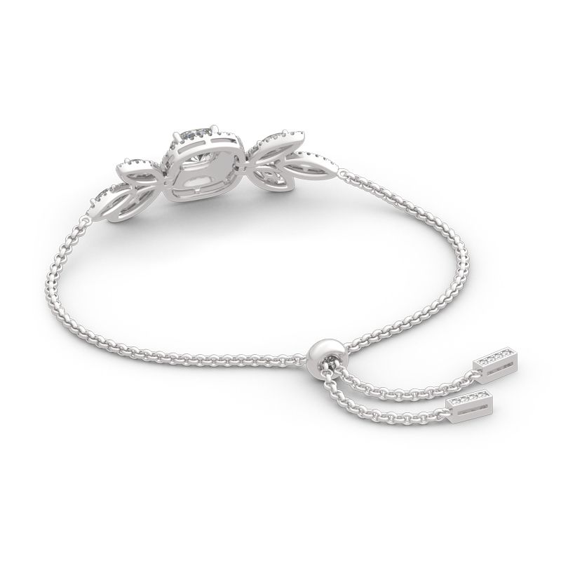 A smart choice you’ll want to wear day after day, this sparkling bracelet speaks to your classic sense of style. Crafted in sterling silver, it features a shimmering cushion cut center stone wrapped in sparkling double halo frames, bringing out it’s beauty and sparkle. Additional stones form leaf-shaped design to add more elegance to this bracelet. Whether it’s for a special gift or a treat for yourself,this bracelet is certain to be appreciated.