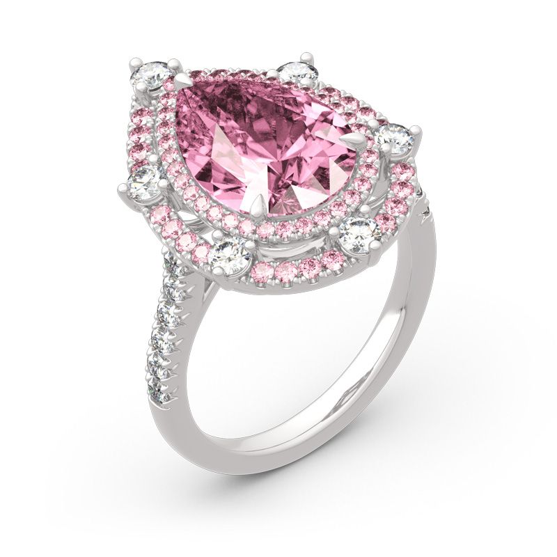 Double Halo Pear Cut Pink Stone Sterling Silver Ring