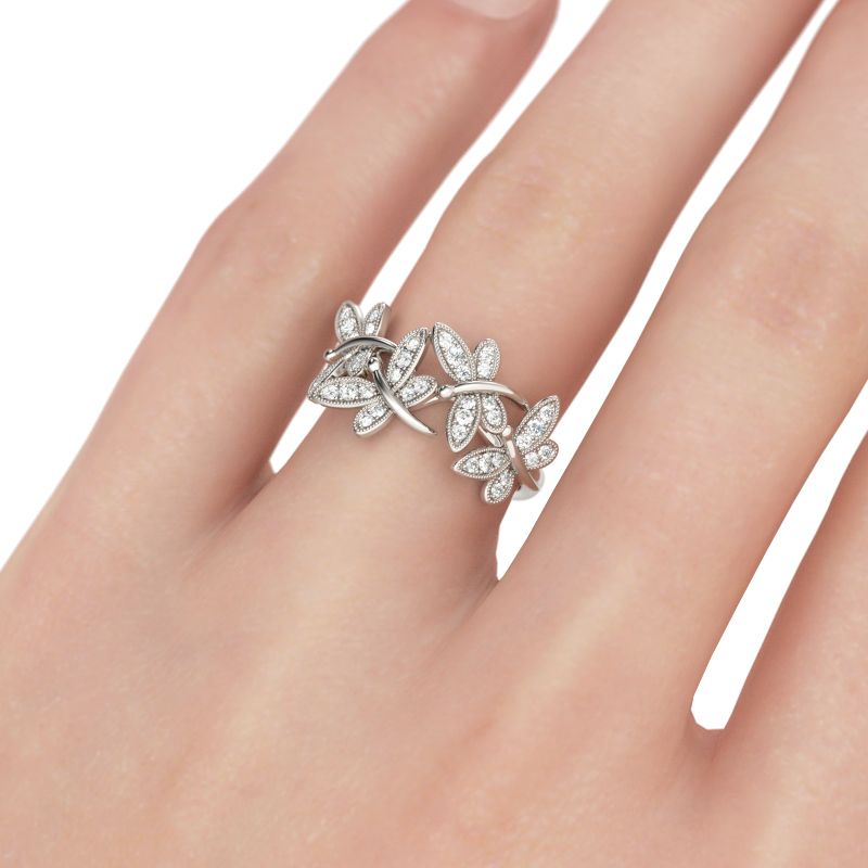 Channel the elegant nature of the dragonfly with this sterling silver fashion ring. Crafted in sterling silver, the ring showcases four shimmering dragonflies across the center.The detailing on the dragonflies and sparkling stones makes it a beautiful statement piece. Fresh and feminine, this dragonfly fashion ring is sure to win her heart.