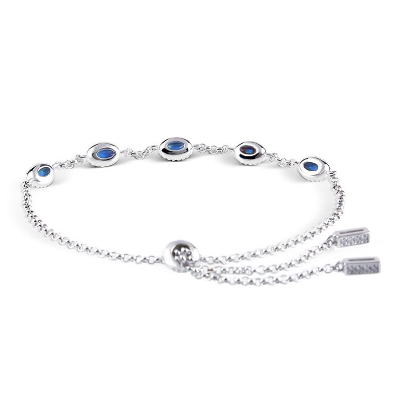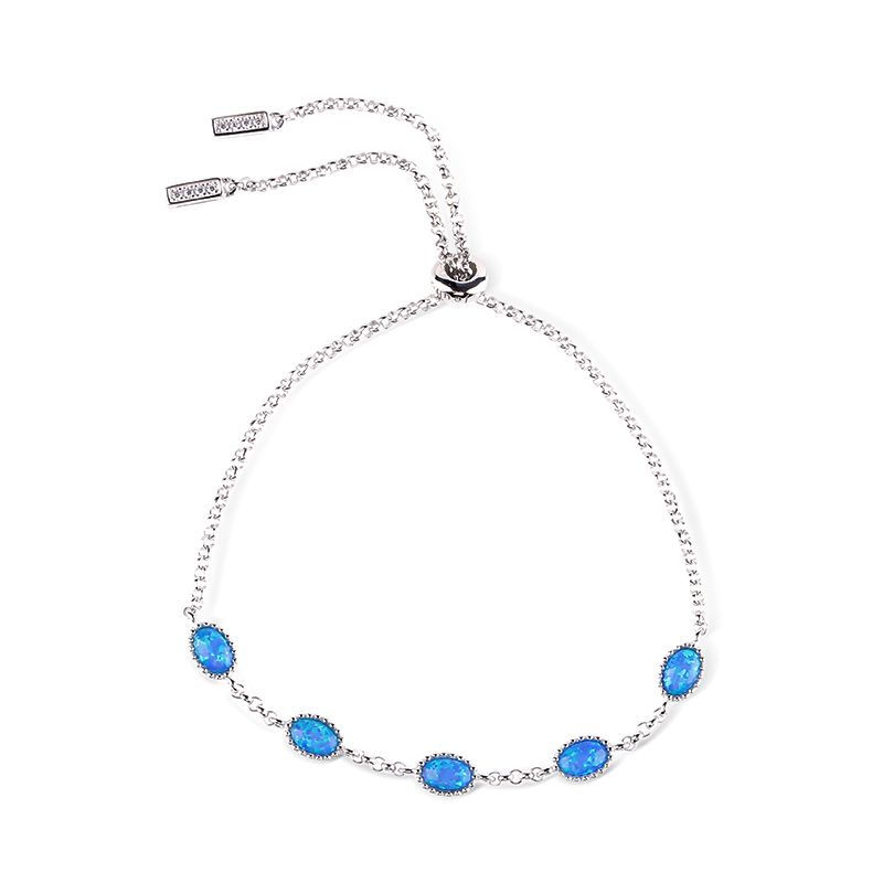 Experience opal’s unique charm with this bracelet. Crafted in sterling silver, this bracelet shows a charming look with glistening white stones and unique blue opals. You can wear it alone or stack it with other bracelets. The bolo bracelet is easy to adjust the size to fit for her wrist to create different looks. Surprised her with this charming piece.