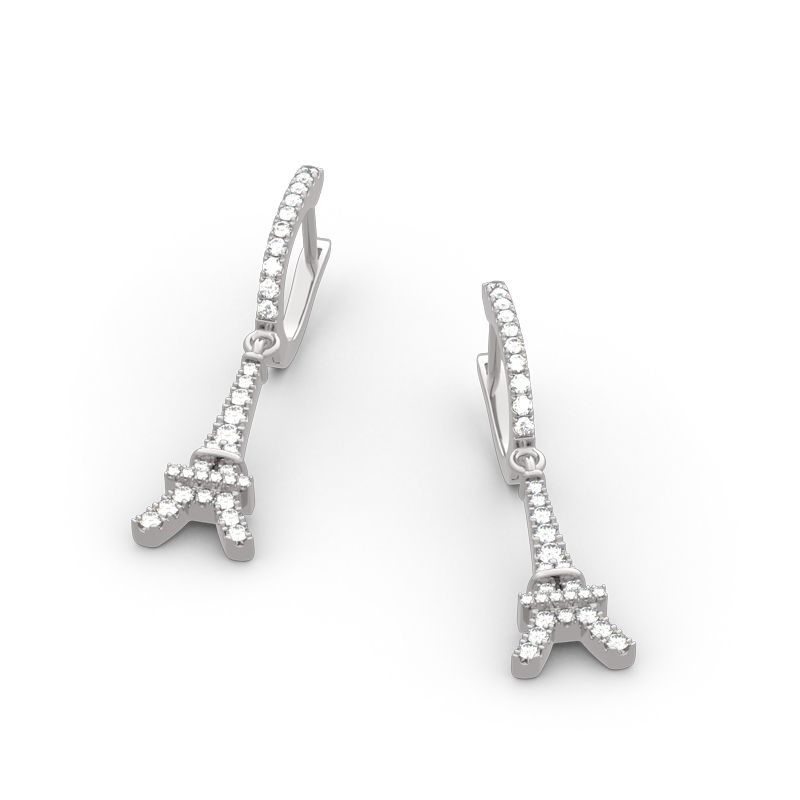 Let’s be honest: everyone loves Paris a little bit in their lives, and these adorable Eiffel Tower earrings are the perfect touch. Crafted in sterling silver,these earrings show unique and elegant beauty with its exquisite workmanship. The simple tower pendant adds femininity to this design, while sparking stones add extra shimmer.These earrings are simply a must-have for your jewelry wardrobe.
