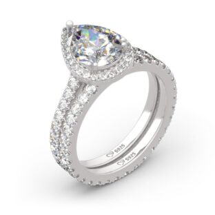 Ask for her hand with the sparkling ring set, and seal your commitment with an equally beautiful wedding band. Crafted in sterling silver, this beautiful design showcases a glistening emerald-cut stone at the center, while additional stones glisten on the shank as well as the wedding band. Glamorous and classic, this exceptional bridal set will forever express your eternal love and undying commitment.