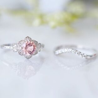 Floral Halo Cushion Cut Synthetic Morganite Sterling Silver Ring