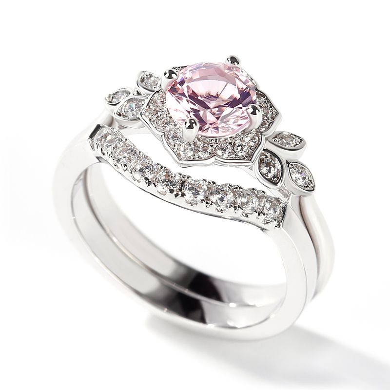 Flower Design Round Cut Synthetic Morganite Sterling Silver Ring