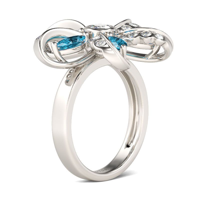 Stunning and sparkling, this flower ring will capture your heart at first sight! Flower is one of the most popular design elements in jewelry. It’s often related with beauty,vitality and happiness, like your love. Crafted in sterling silver, sculptured in a lively flower, the ring is a masterpiece. Every petal is set with shimmering white stones and a aquamarine blue stone. Treat yourself a holiday gift with this masterpiece!