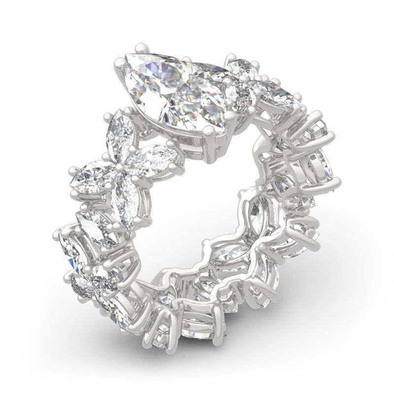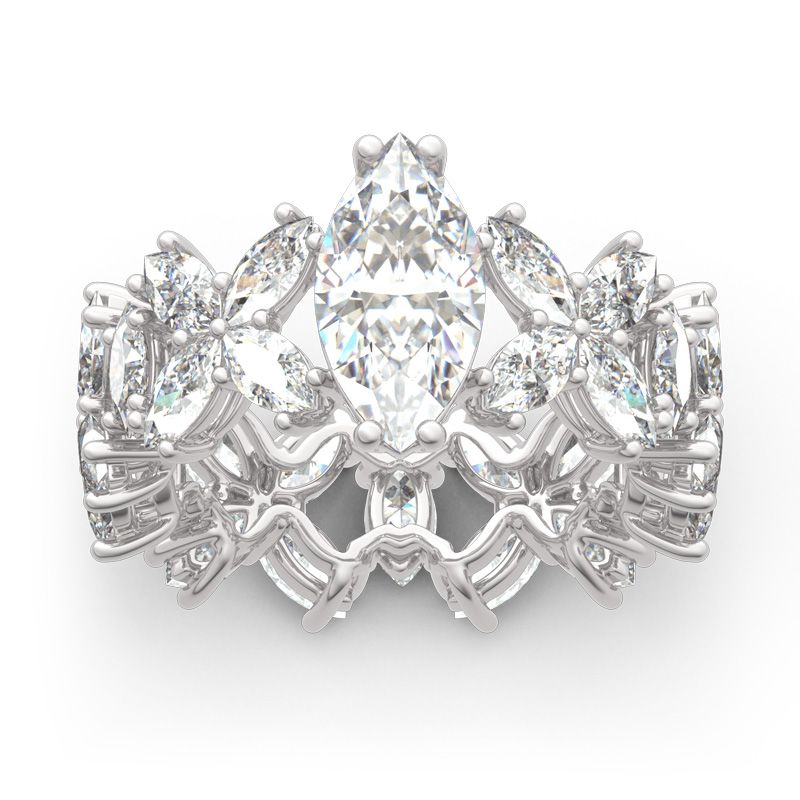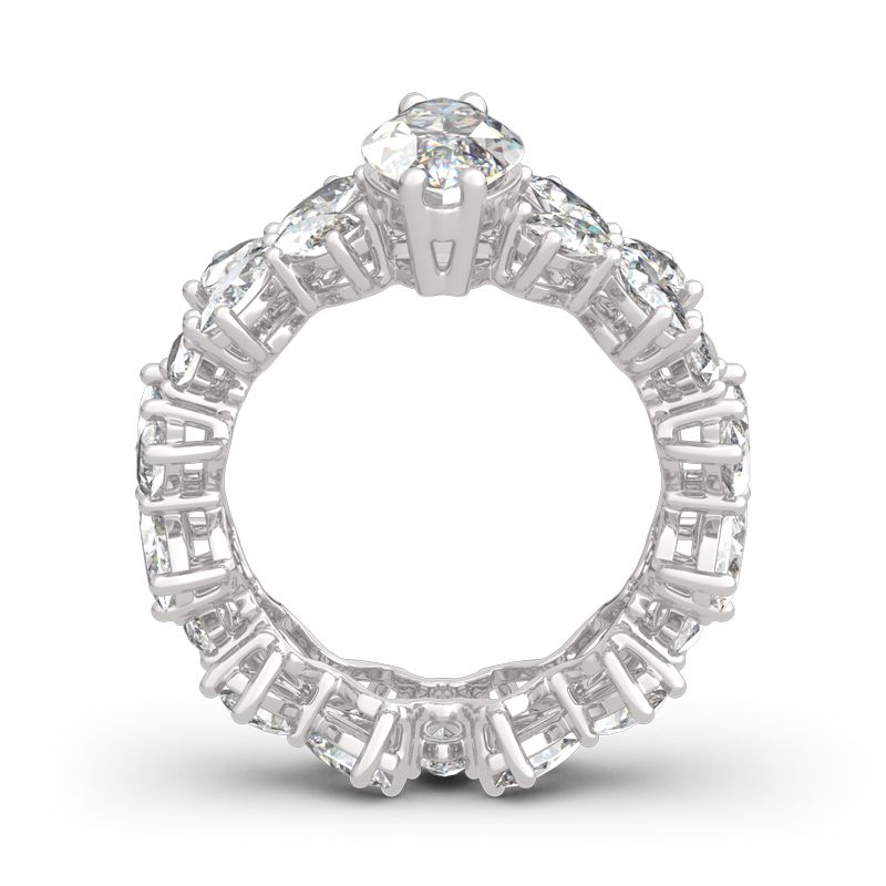 Chic, confident and ultra-stylish, this striking sterling silver ring is sure to grab her attention! Stunning as a wedding or anniversary ring, this ring shimmers with prong-set marquise cut stones that completely surround the ring. With all the stones,the ring will sparkle perfectly from every angle. It will surely be an eye-catcher in every occasion.
