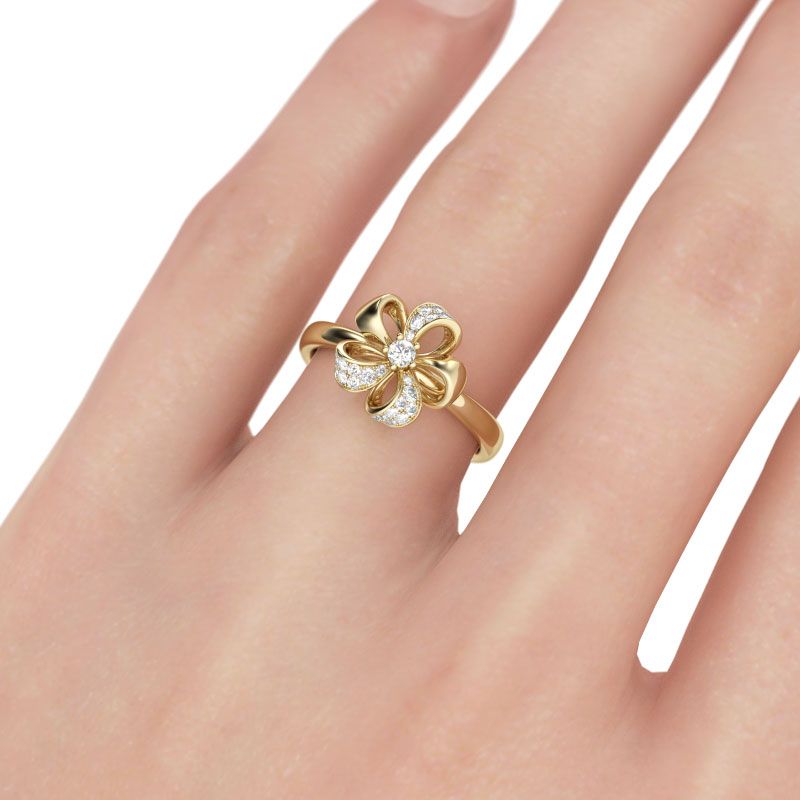 Treat yourself with this lovely flower ring! Flowers are always related with beauty,vitality and happiness,like your love. Crafted in warm gold tone sterling silver, a curvaceous six-petaled flower blooms on a high polished shank. Three petals are set will shimmering round stones to add sparkle to the ring. The ring will show a really beautiful and unique look on your left hand. Never miss it.