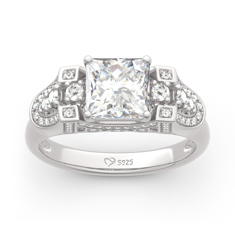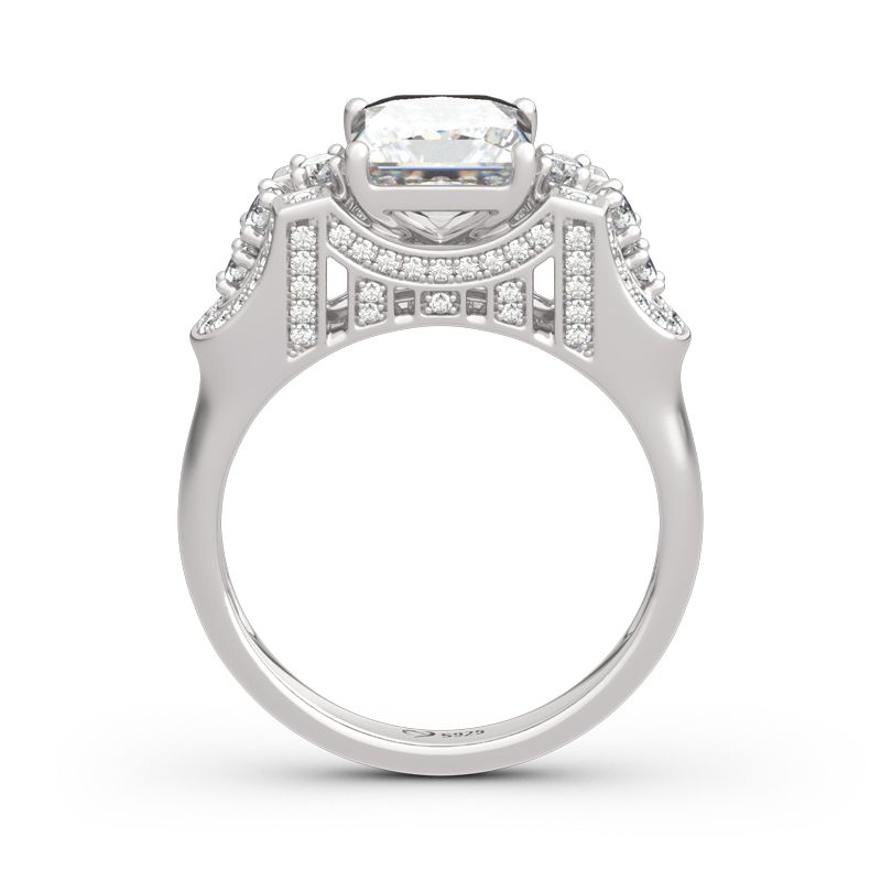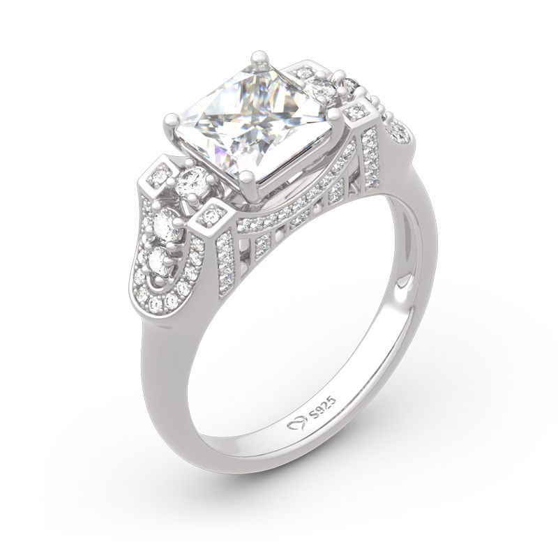 Golden Gate Bridge, once described as “possibly the most beautiful, certainly the most photographed, bridge in the world”. Inspired by the Golden Gate Bridge, this ring perfectly demonstrates the structure and beauty of the bridge. Crafted in sterling silver, this dazzling design showcases a princess cut center stone,while additional round stones are set into the shank between intricate borders. Exquisite and unique, this romantic choice is certain to become a treasured keepsake.