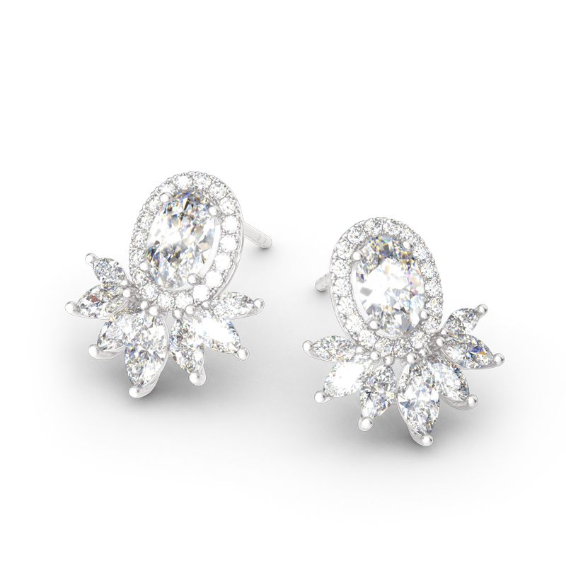 Designed to catch and reflect light, these stunning earrings are a spellbinding choice. Crafted in sterling silver, each design highlights a shimmering oval-shaped stone wrapped in a halo frame of dazzling round stones. Additional marquise cut stones add more sparkle to the design. So splendid and sophisticated,these breathtaking earrings elevate her evening look.