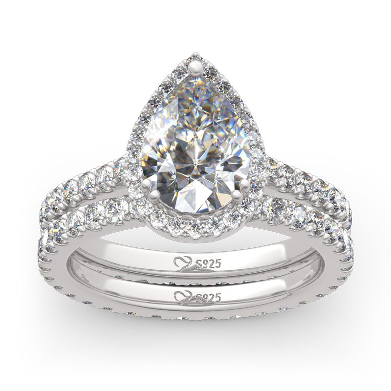 Halo Pear Cut Sterling Silver Eternity Ring Set