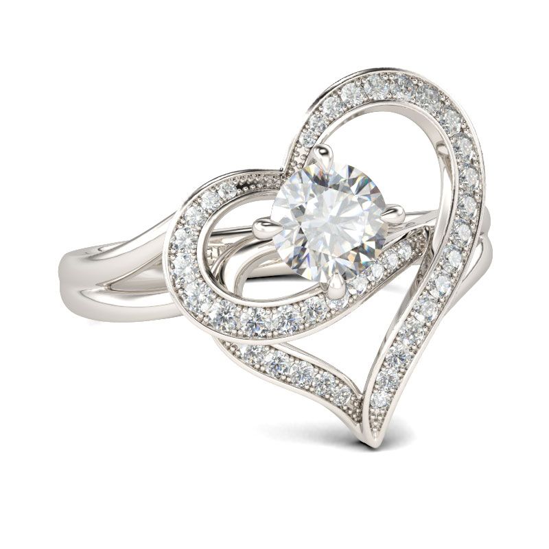 Heart Design Round Cut Sterling Silver Ring
