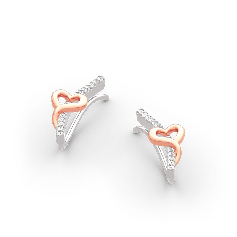 Make a sweet fashion statement with these glimmering climber earrings. Crafted in sterling silver, each earring showcases a rose gold heart atop a glimmering ribbon of stones that work up the ear in a gentle curve. Feminine and fresh, these heart shape fashion earrings are a brilliant addition to her wardrobe.