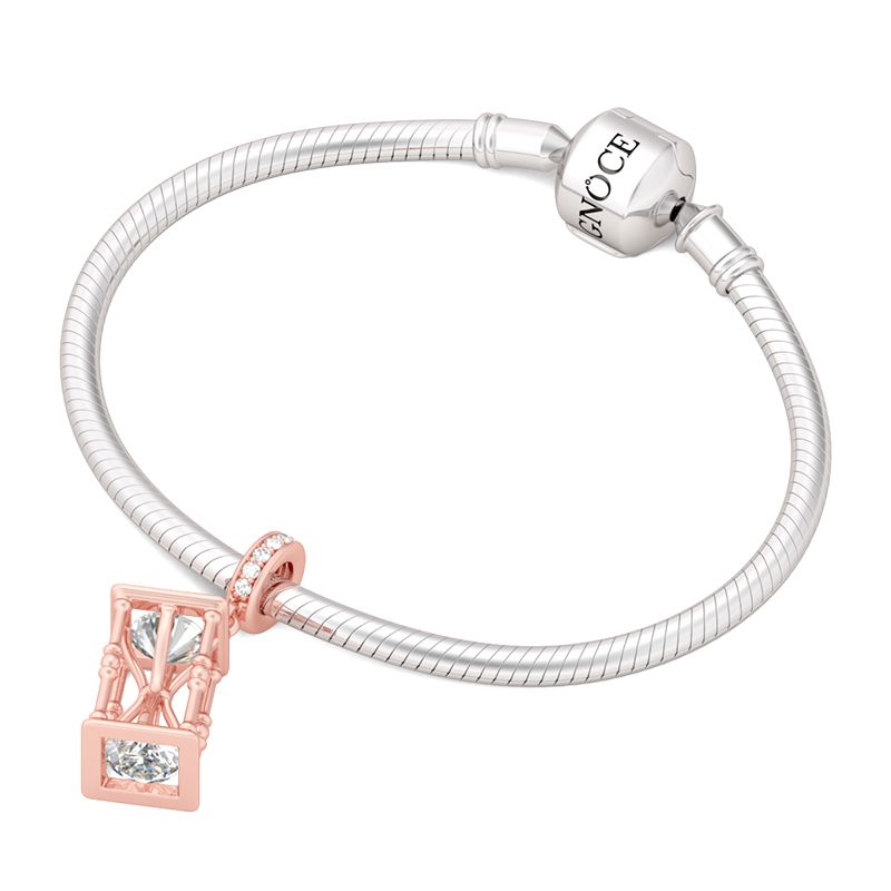 This 18k rose gold plated hourglass pendant symbolizes time, the zircon in the middle replaces the sand. Time passes by, may you cherish the time.