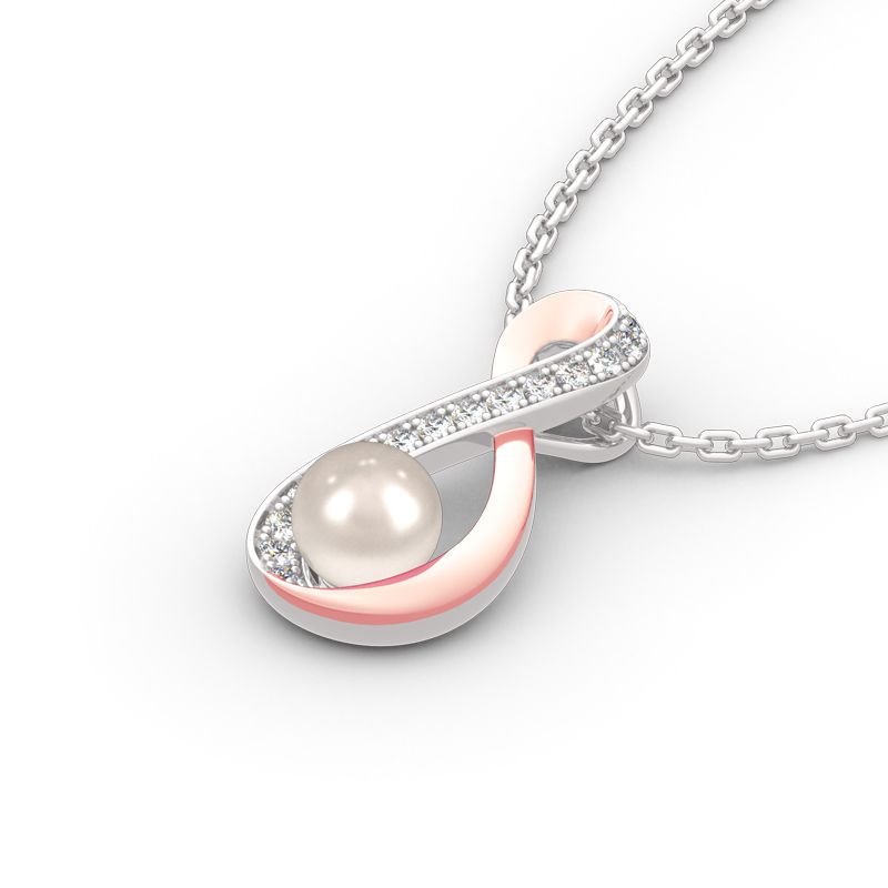 Showing understated elegance and simple beauty, this infinity necklace makes an adorable gift for loved one or yourself. Infinity is one of the most popular design elements in jewelry. It symbolizes eternity, empowerment, and everlasting love. To anyone, the infinity symbol can mean different things. Crafted in two tone sterling silver, set with a pearl and shimmering round stones on the ribbon of pendant, this necklace will be certain to show a stunning look around your necklace. Treat yourself or surprise her with this masterpiece.