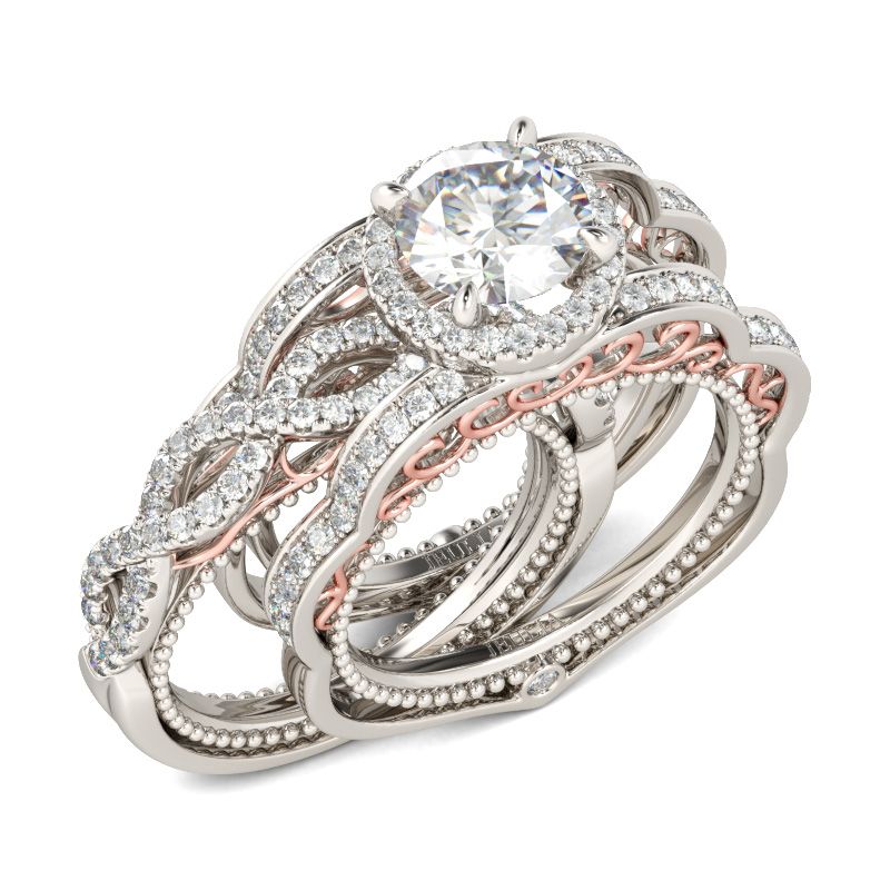 Interchangeable Twist Round Cut Sterling Silver Ring Set