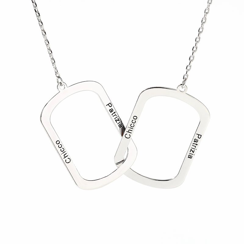 Striking and elegant, this personalized pendant celebrates your everlasting love.Crafted in sterling silver, this stunning engraved necklace showcases the names of those who are closest to you, or if you like, you can opt for meaningful words instead. Engraved jewelry makes the perfect, personalized gift for any holiday or special occasion, and the ideal addition to your own collection!