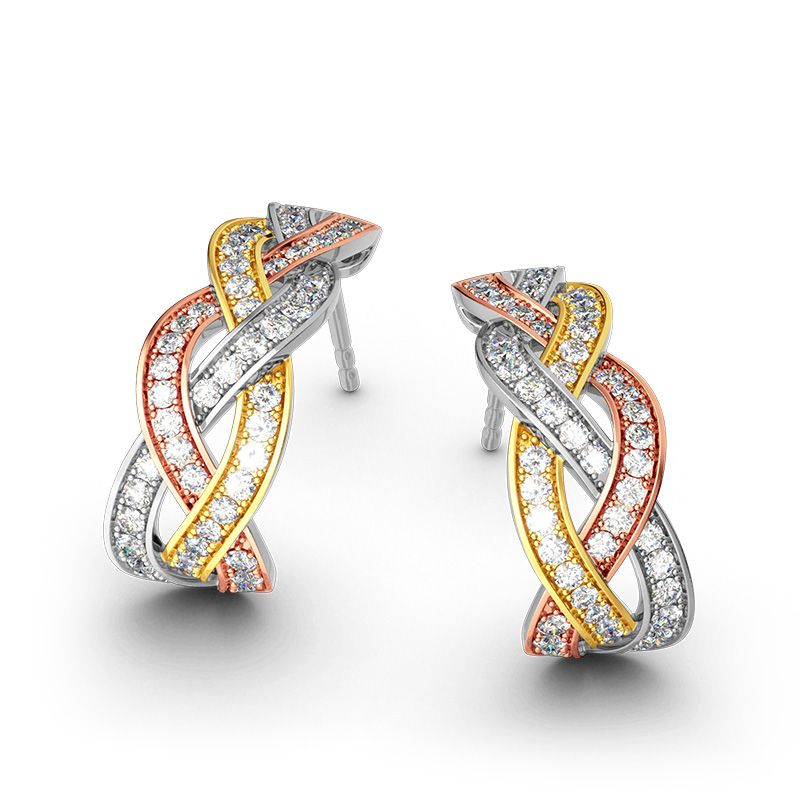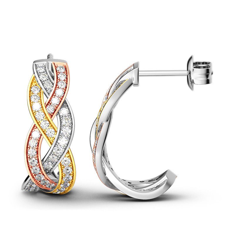 Classic and unique, this tri-tone earrings will capture your heart at first sight. Crafted in tri-tone sterling silver, tri-tone lines are intertwined together to create a timeless look. Set with glistening white stone, the earrings will show a very sparkling look on your ears. Tri-tone design is a jewelry trend in 2018-2019. Just add this stylish and beautiful piece to your jewelry box!