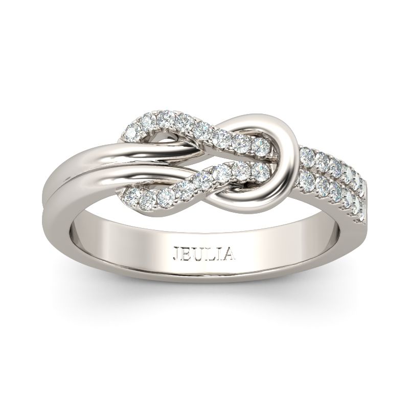 A brilliant way to show her your love is forever, this fashion ring will certainly touch her heart. This meaningful design showcases two ribbons interlocked for a infinity symbol-shaped look, while shimmering round stones add eye-catching sparkle. This band makes a stunning statement of everlasting love.