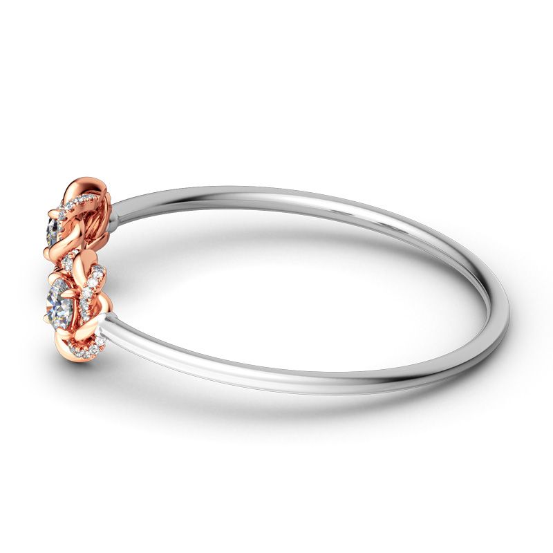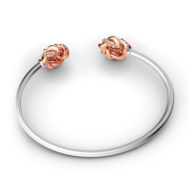Surround her with flowers all year long. Buy that special someone this silver flower bangle, whether she is celebrating a holiday or if she is just a lover of flowers. Crafted in two tone sterling silver, the bangle consists from two blossoms on the two ends and a high polished bangle, which shows simple elegance. The cuff bangle is easy to adjust the size to fit for her wrist. Surprised her with this charming piece.