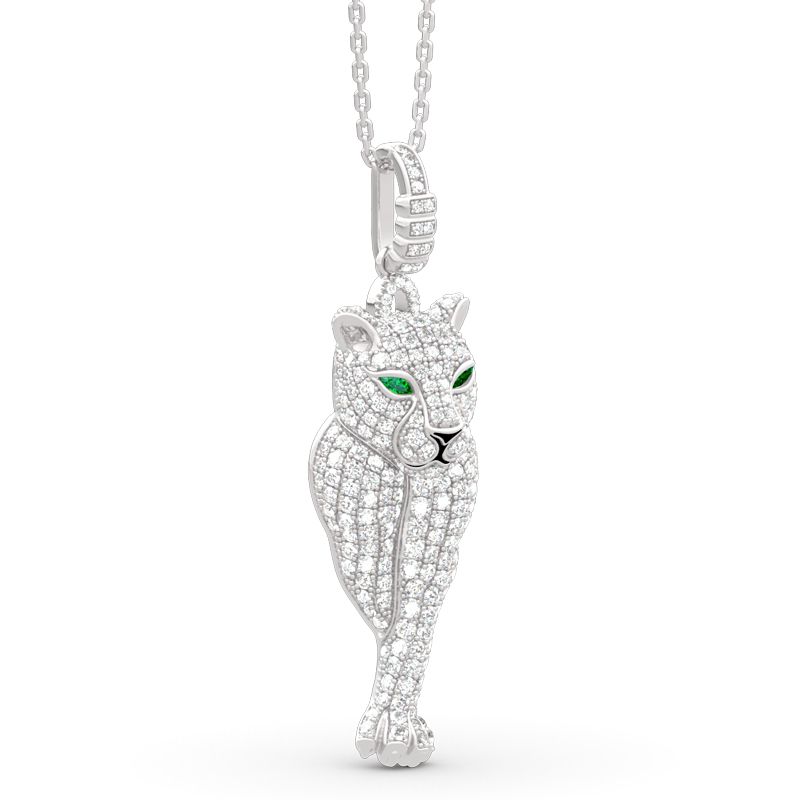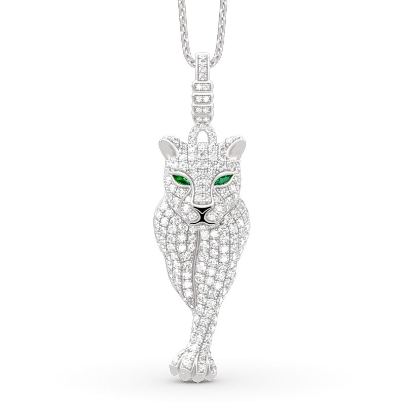 A beautiful adornment for any occasion, this traditional leopard pendant is simply exquisite. Crafted in sterling silver, this glittering necklace showcases a leopard adorned with sparkling stones and bright eyes that is unique and will add a wild look to your jewelry. Treat yourself or surprised her with this masterpiece!