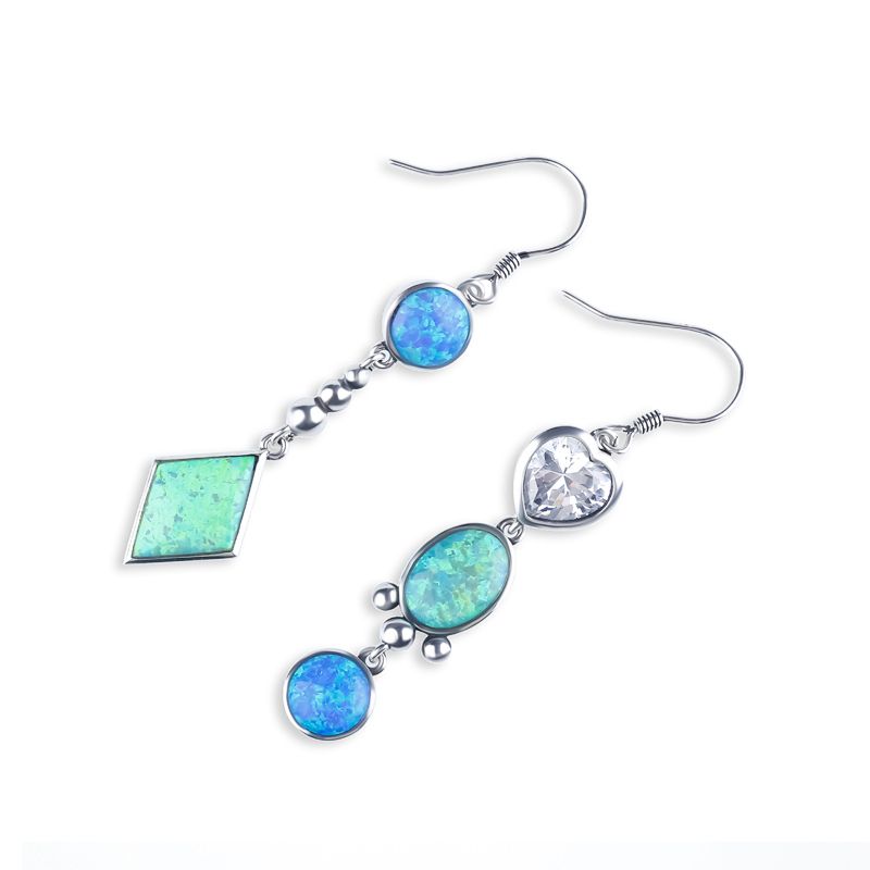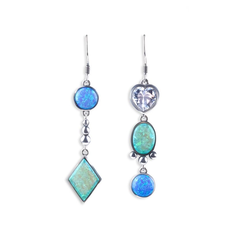 Fashionable asymmetric design and exotic opals make the earrings an eye catcher.
