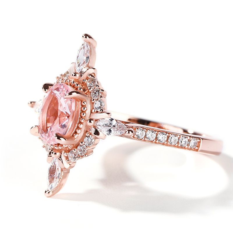 Oval Cut Vintage Synthetic Morganite Sterling Silver Ring