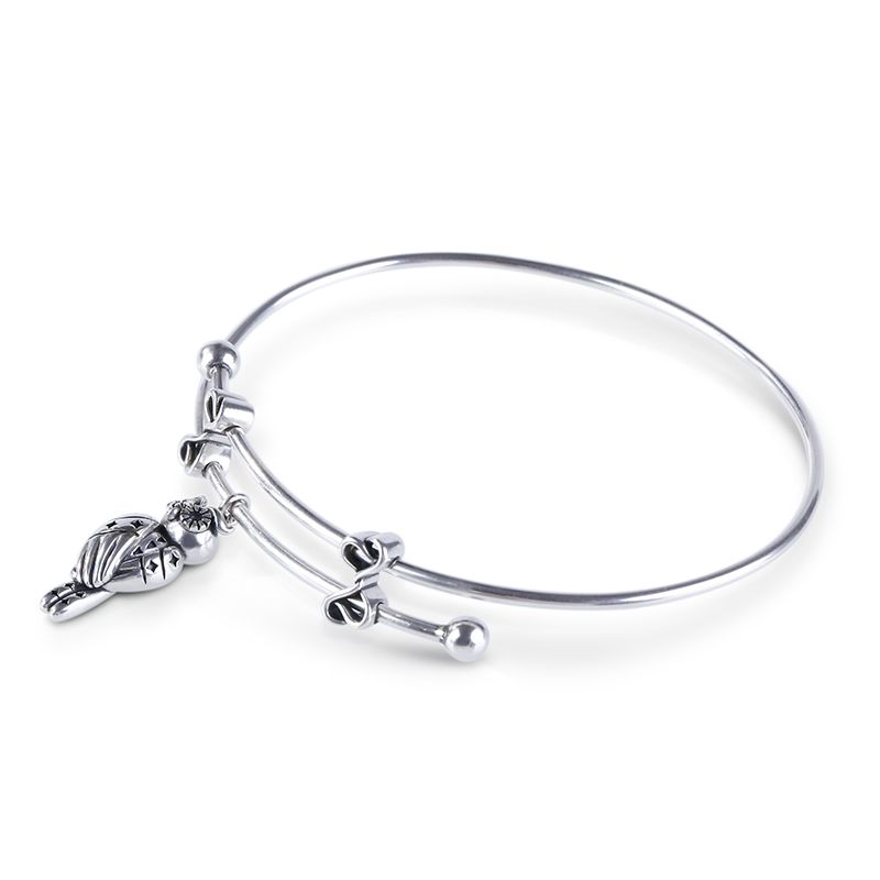 Celebrate your life with this bracelet. Crafted in oxidized silver, the bracelet shows unique and pristine beauty with its exquisite workmanship. This bracelet features its lively owlet dangle and heart decorations on the bangle. The bangle is made to be adjustable to fit for your size. It’s a little lovely gift for Mom, wife, children or yourself. Never miss it!