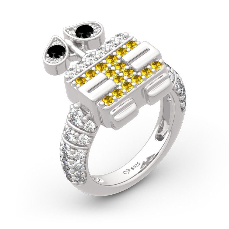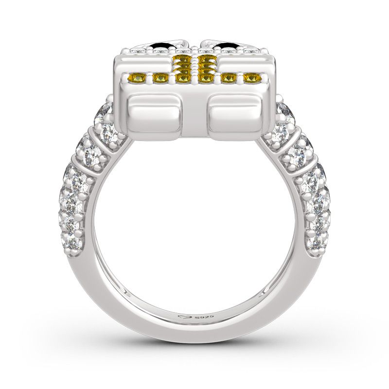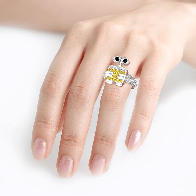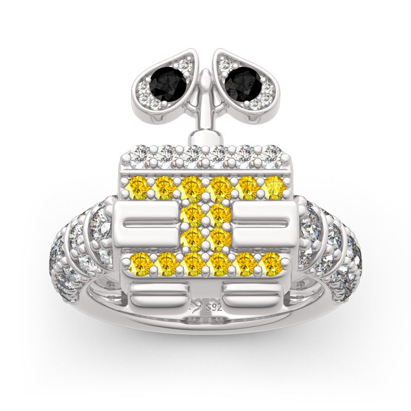 Inspired by robot WALL-E,a lovable animated character for the classic Pixar feature film,this adorable ring will add just the right touch of fun and shine to your jewelry collection.Crafted in sterling silver,this design shines brightly with rows of shimmering stones.Glistening and glamorous,this little robot will steal your heart again.