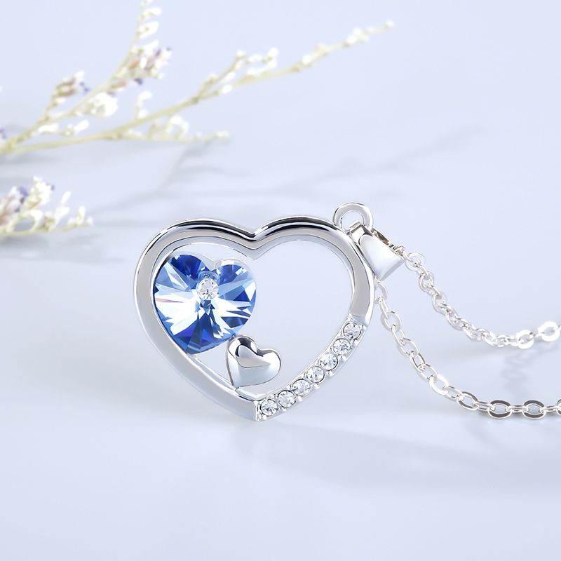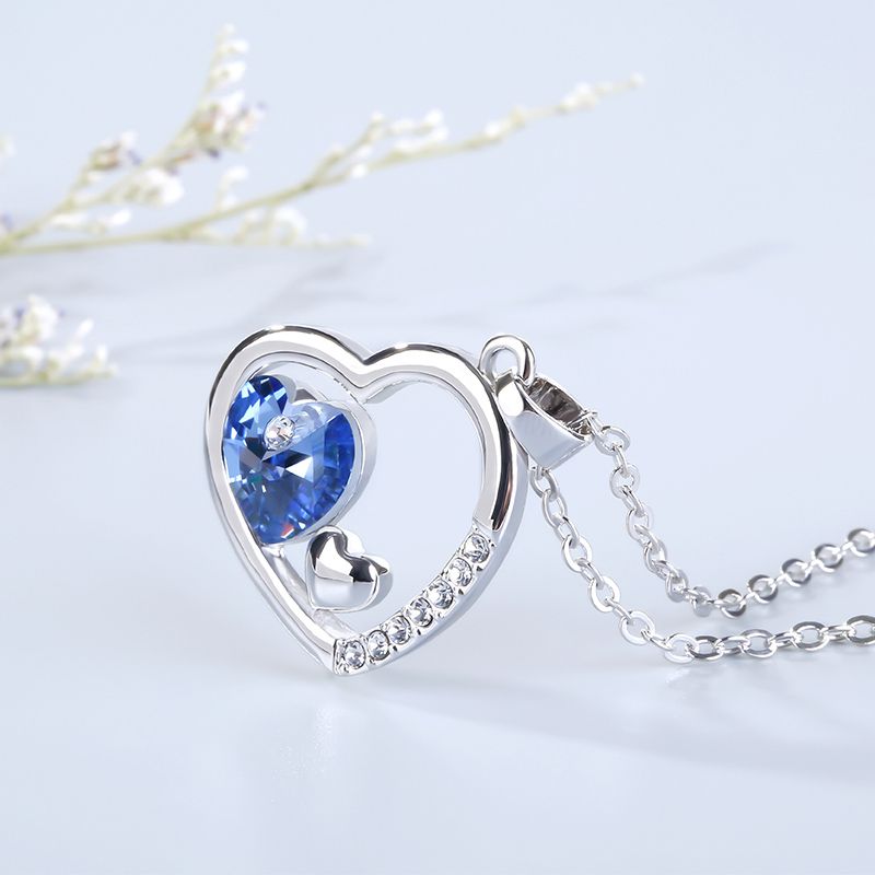 This intriguing heart pendant is a precious choice she’ll love to wear. The sweet design showcases a blue heart-shaped stone and a polished heart artfully wrapped in a polished open heart outline. Lending sparkle, the heart outline adorned with shimmering round stones. This fashion and sweet necklace keeps your heart close to hers at all times.