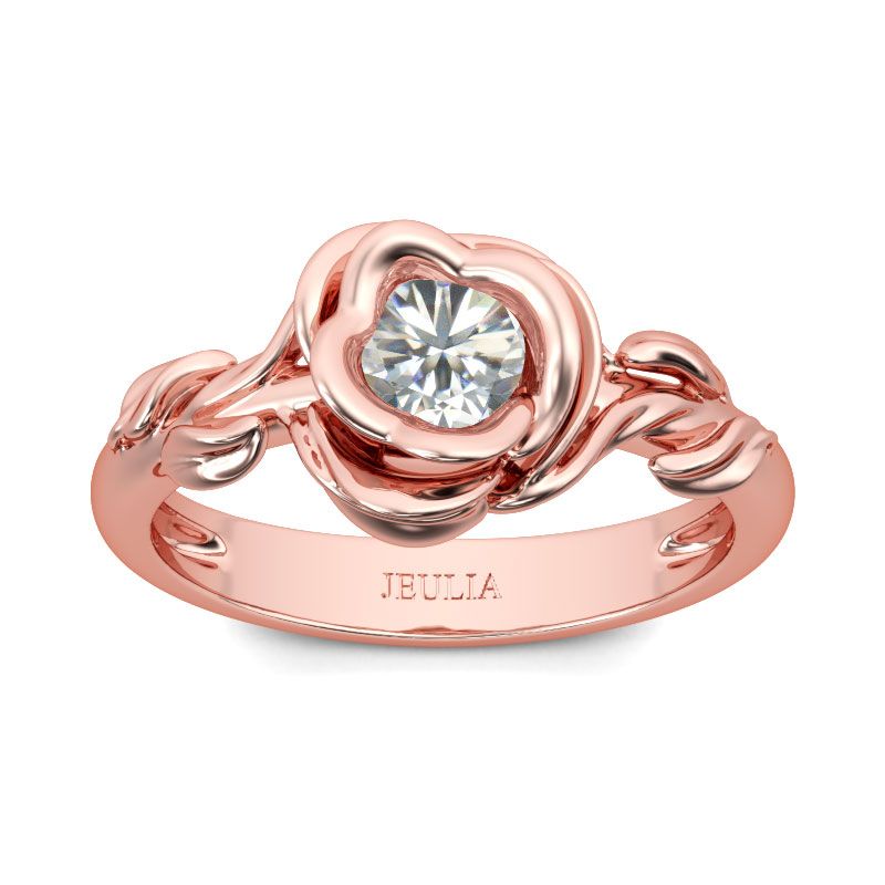 Rose Gold Tone Flower Design Round Cut Sterling Silver Ring
