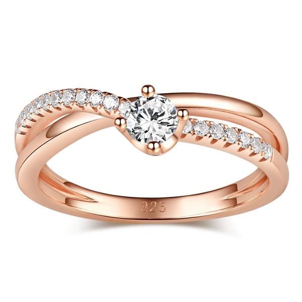Rose Gold Tone Round Cut Sterling Silver Promise Ring