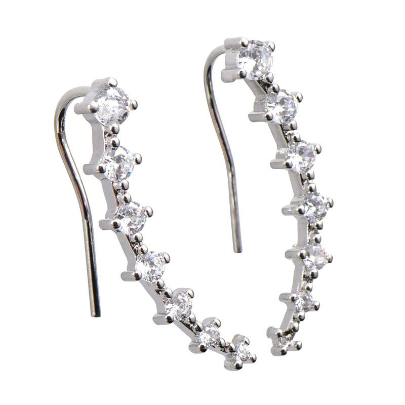 Elegant and sparkling, you’ll love these unique and stylish climber earrings. Each earring features a graduating row of shimmering round stones that descend in size as the style gently curves up the ear. Mark your romance with these shimmering climber earrings.